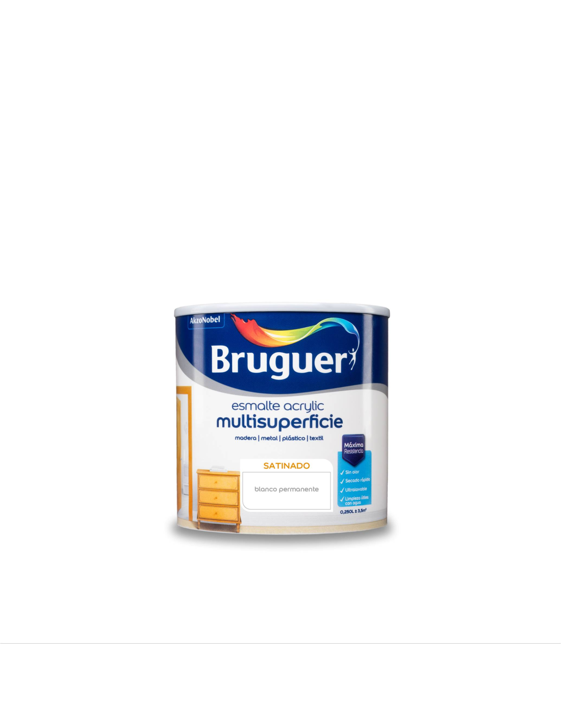 BRUGUER ESMALTE ACRYLIC MULTISUPERFICIE SATINADO 250 ml. BLANCO PERMANENTE