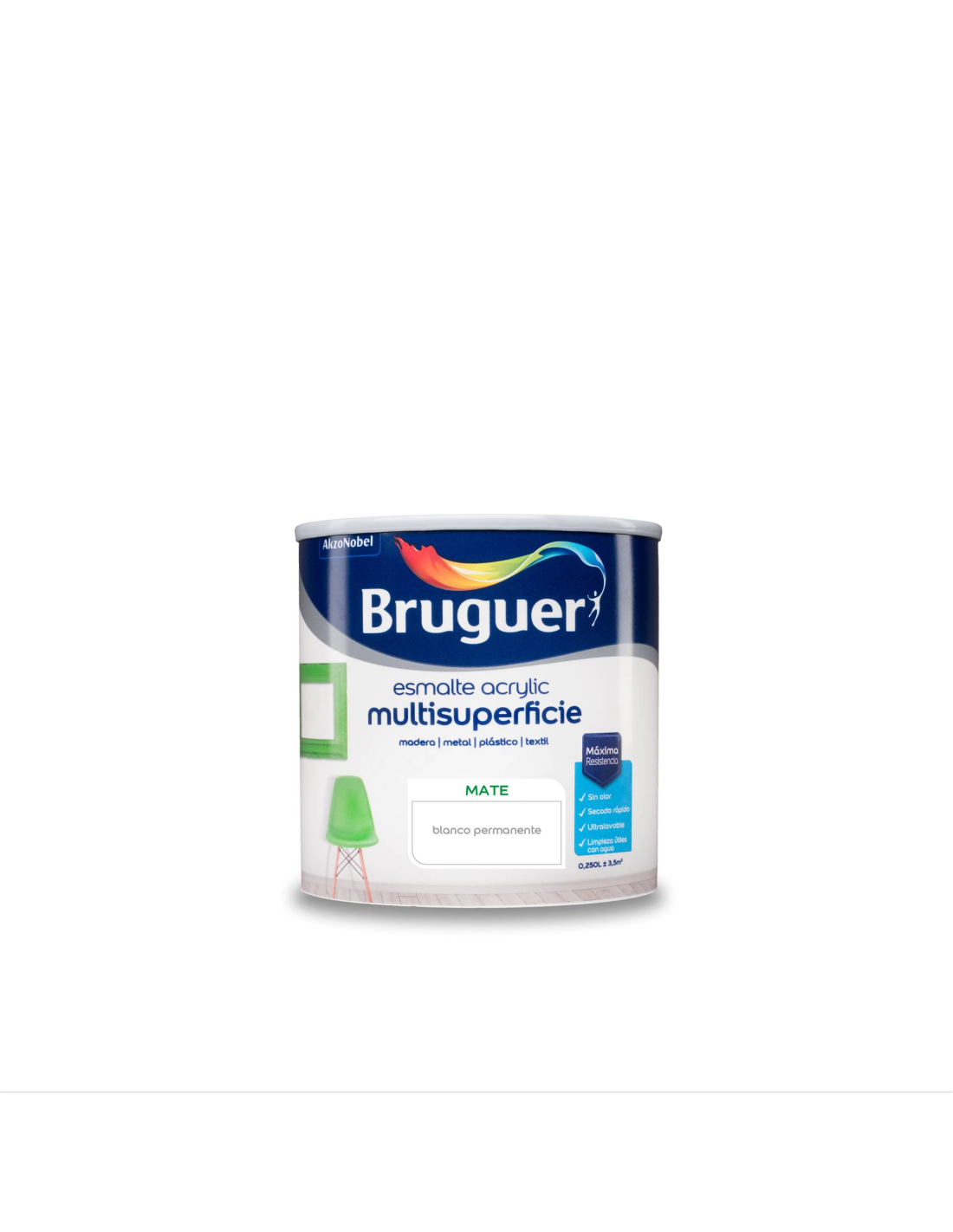 BRUGUER ESMALTE ACRYLIC MULTISUPERFICIE MATE 250 ml. BLANCO PERMANENTE