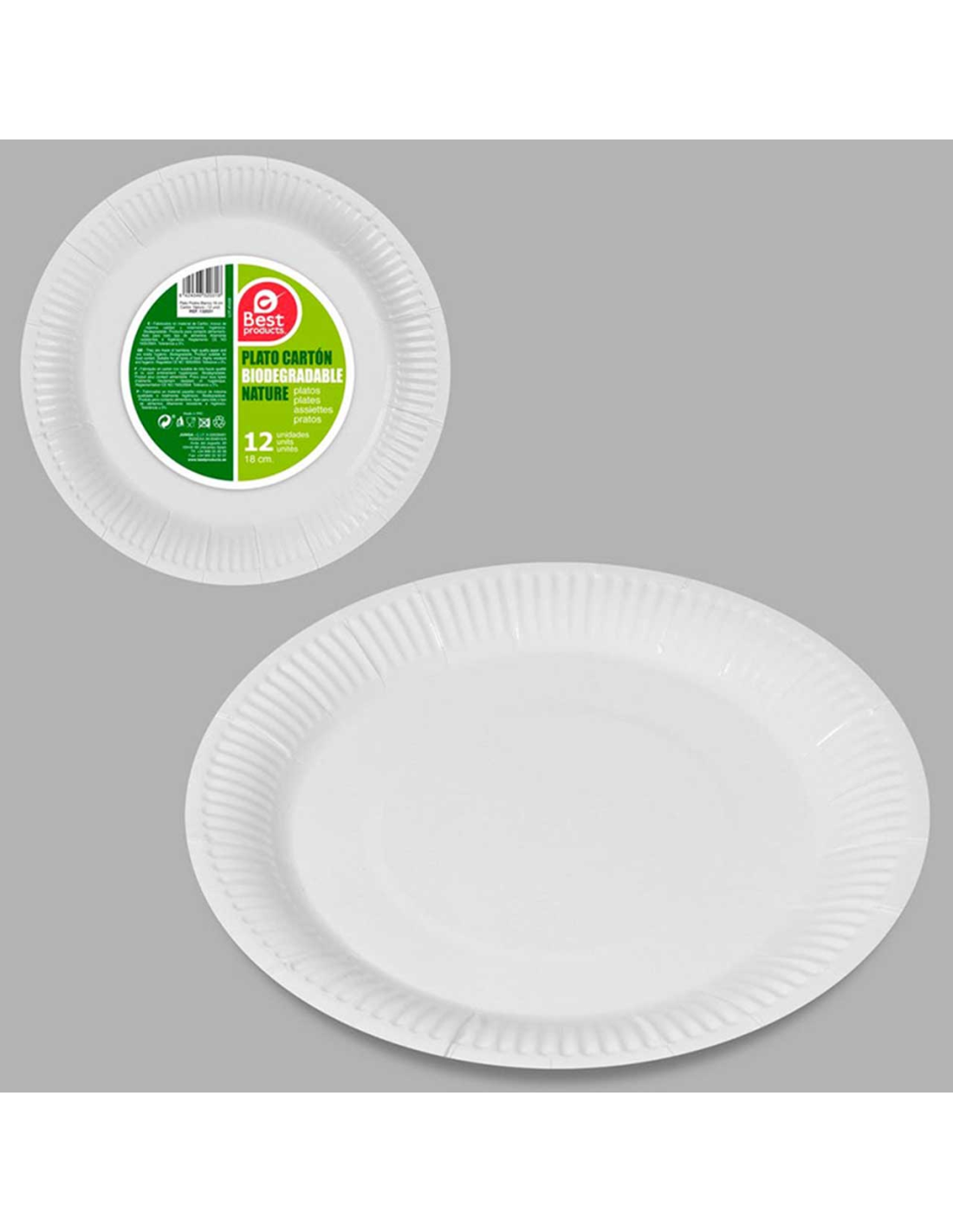 PLATO POSTRE CAMPING BEST PAQUETE 12 uds 18 cm CARTON BLANCO
