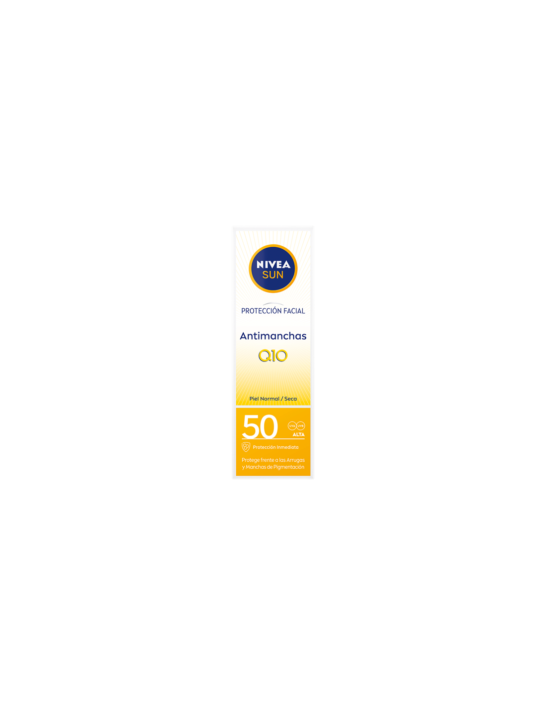 Sua fórmula com Q10 previne e combate o aparecimento de linhas, rugas e manchas de pigmentação induzidas pelo sol. Desenvolvido para Pele Normal/Seca. Sensação leve e sedosa na pele - ideal para uso diário. Fórmula compatível com o contorno dos olhos - testada oftalmologicamente. Testado dermatologicamente para a pele humana. NIVEA SUN comprometeu-se a reduzir o impacto no meio ambiente. Respeitoso com os Oceanos: fórmula sem filtros UV de Octinoxato, Oxibenzona ou Octocrileno. Caixa de papelão com Certificação Mista FSC.