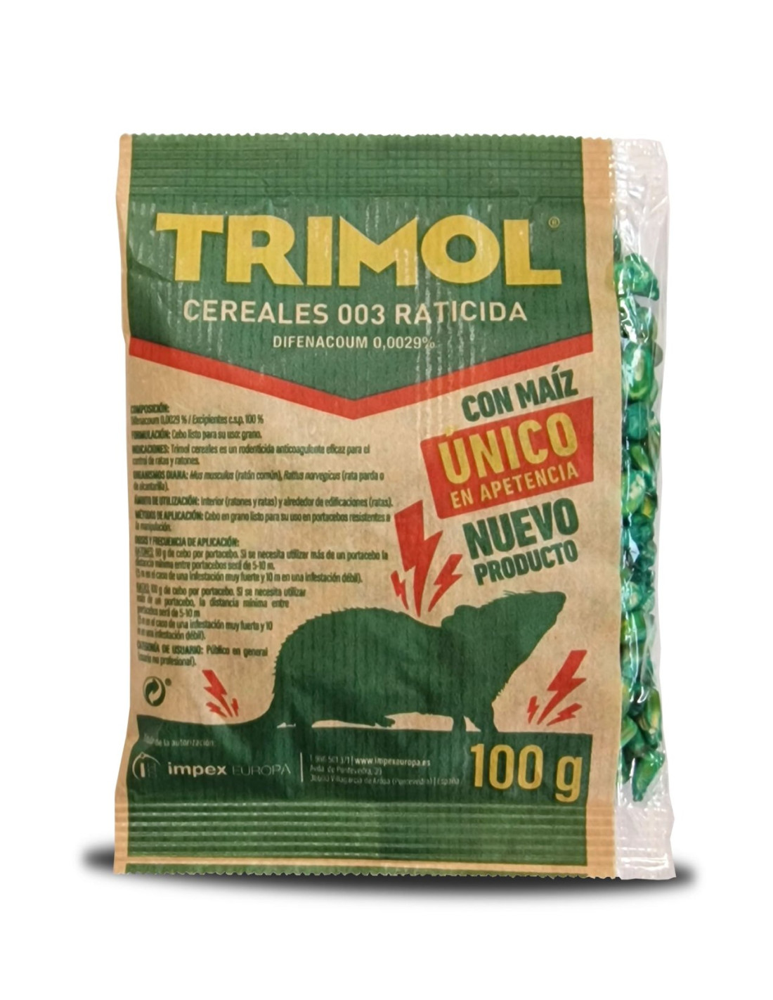 CEBO PREPARADO CON MEZCLAS DE CEREALES ENTEROSCON EL FIN DE FACILITAR LA INTRODUCCION DEL VENENO. EN BOLSITAS DE 25 GR MICROP
